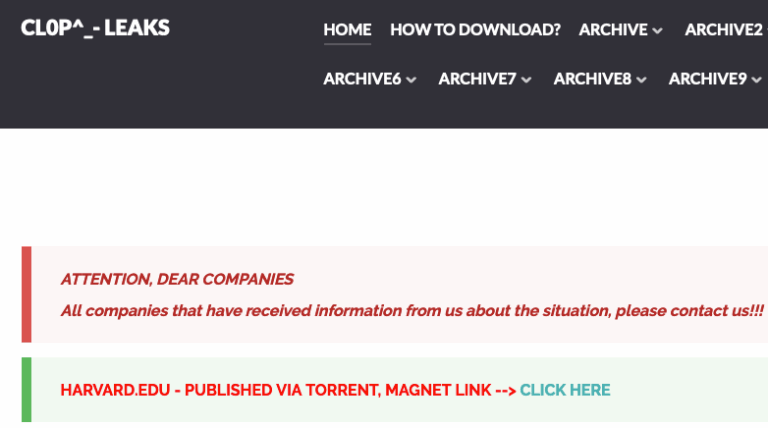 Ime univerziteta pojavilo se 12. oktobra na sajtu Cl0p ransomware grupe posvećenom žrtvama, gdje su hakeri u početku samo naveli Harvard, a zatim objavili i link ka podacima koji su, kako tvrde, ukradeni.